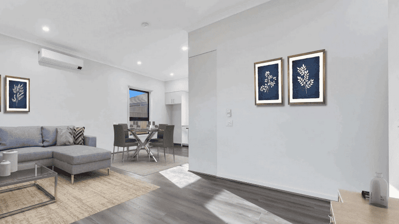 This two-bedroom house is located in the award-winning estate in Mambourin. The residents have access to a recreational facility nearby. Two participants will reside in this home it also has a room for onsite overnight support. This single-level house is fully compliant to meet the NDIS Robust guidelines and features e.g wide hallways and doorways, capacity for ceiling hoists, central heating / cooling. It has a modern kitchen with spacious bedrooms conveniently located to the accessible bathroom.